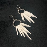 Version 3 of the EFFEN Vodka label earrings made from rubber and stainless steel wire and links.
